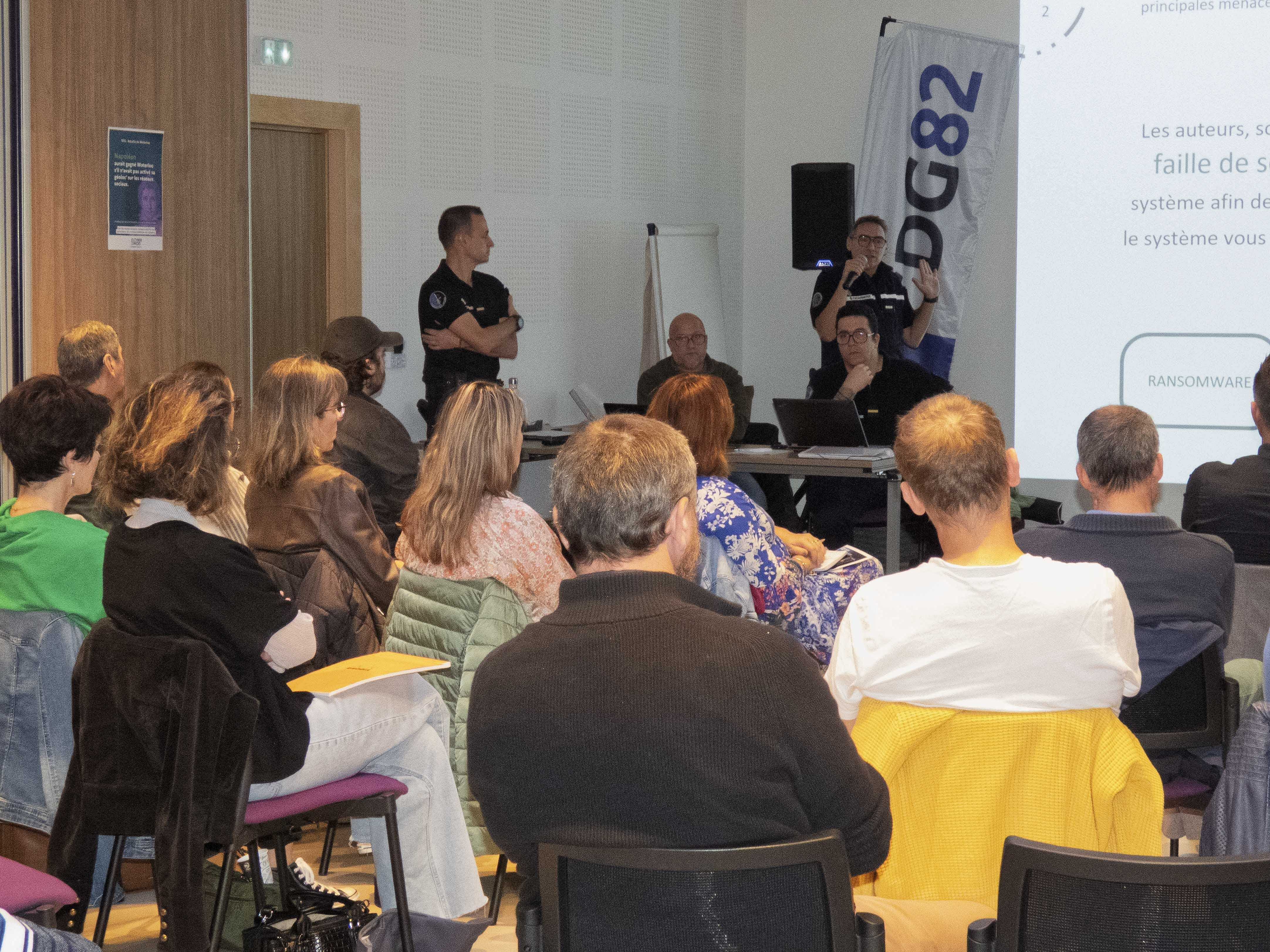 Les CDG82 a eu le plaisir d’accueillir élus, agents et partenaires lors d’une matinée d’information et d’échanges dédiée à la cybersécurité, organisée par le CDG82 en partenariat avec Cyber'Occ et la cellule NTECH82 de la Gendarmerie Nationale.