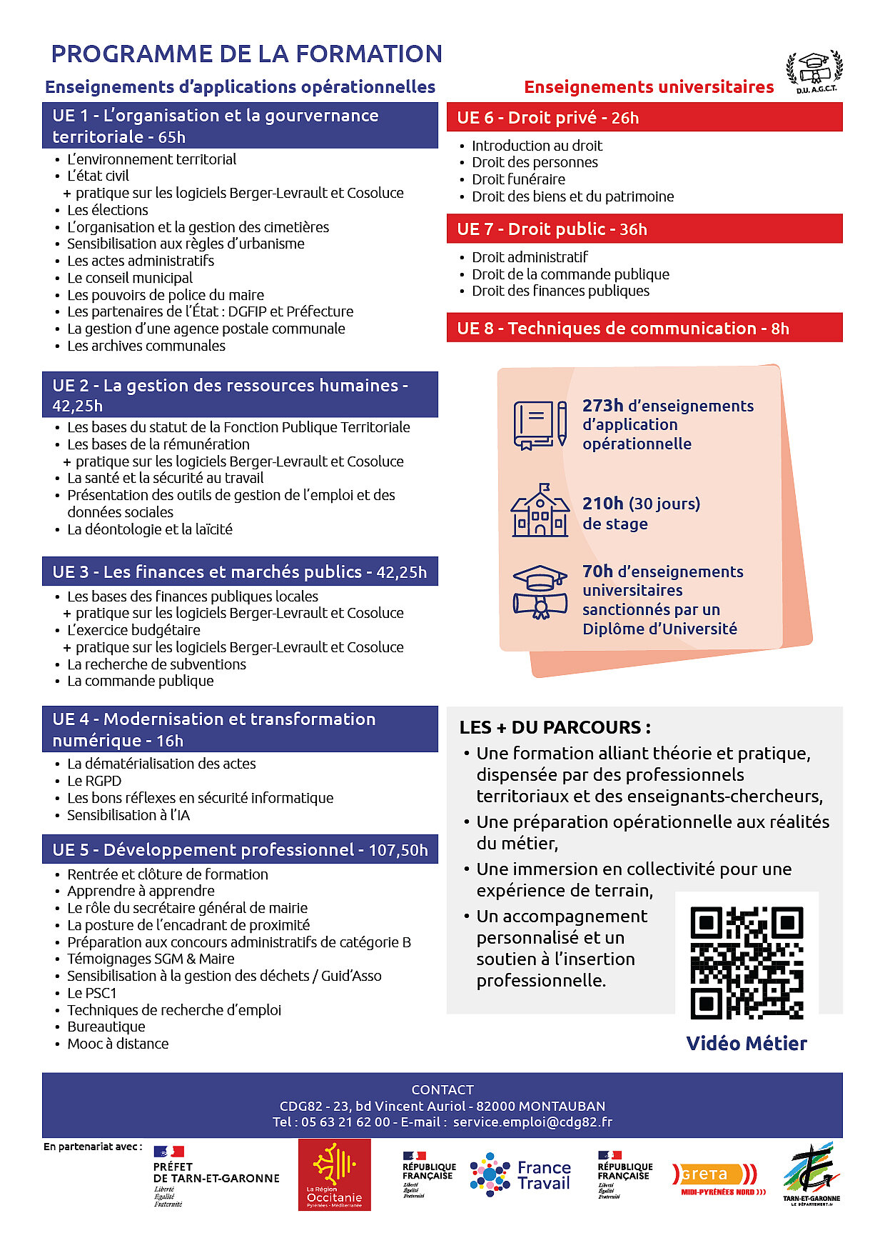 Ce parcours incarne une dynamique partenariale forte en Tarn-et-Garonne, visant à répondre concrètement aux besoins de recrutement des communes rurales. Il s’inscrit également dans une démarche de promotion de l’emploi en permettant 20 reconversions professionnelles pour des demandeurs d’emploi.
