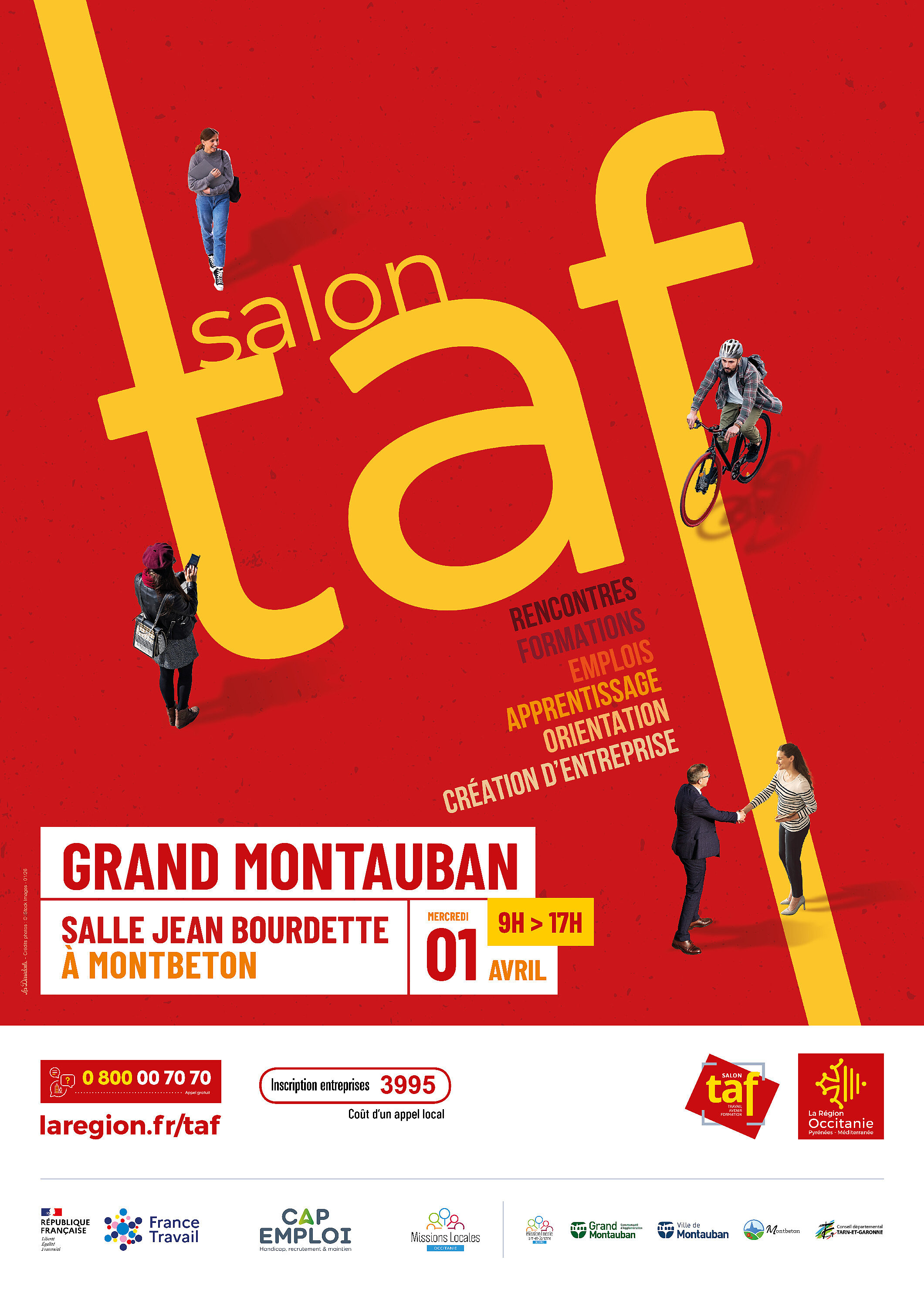 Le salon TAF du Grand Montauban aura lieu le 1er avril 2026 à la salle Jean Bourdette à Montbeton de 9 heures à 17 heures. Il est organisé par la Région, en lien étroit avec France Travail et les partenaires du territoire.